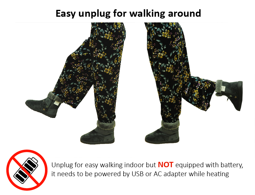 Die beheizbaren Schuhe sind nicht für den Gebrauch im Freien wie normale Schuhe geeignet. Die Anwendung ist nur für den Innenbereich für mehr Komfort und Aufwärmung der Füße vorgesehen, insbesondere in der kalten Jahreszeit.